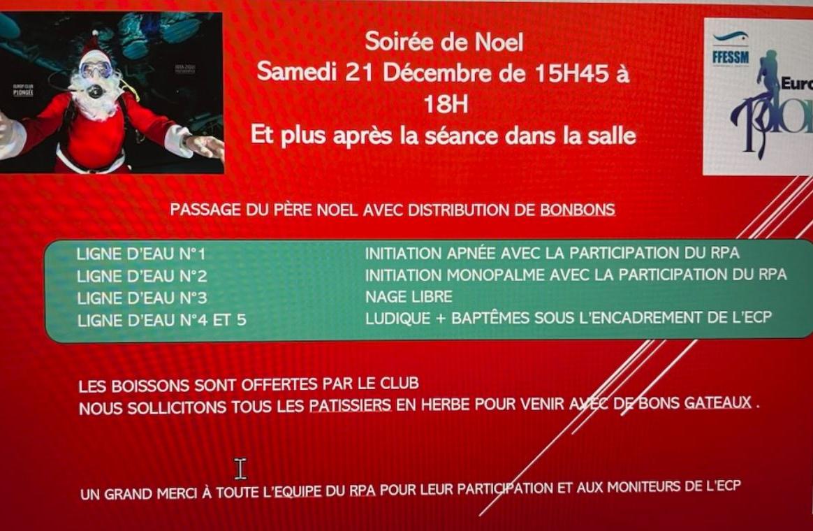 Après notre séance du samedi 21 décembre, l'ECP nous propose de participer à notre premier noël interclub. Pensez à apporter de quoi reprendre des forces!