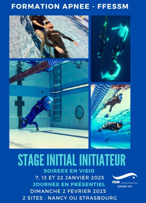 Formation RIFAA (1ere session en cours), formation niveau apnéiste débute en janvier, formation IE1 (débute le 7 janvier en visio, inscription h.comte@hotmail.fr), Apnéiste Expert en Eaux Libres le 1 fevrier à Nancy (inscription codep). Nous essayerons de vous proposer une seconde session RIFAA après février.